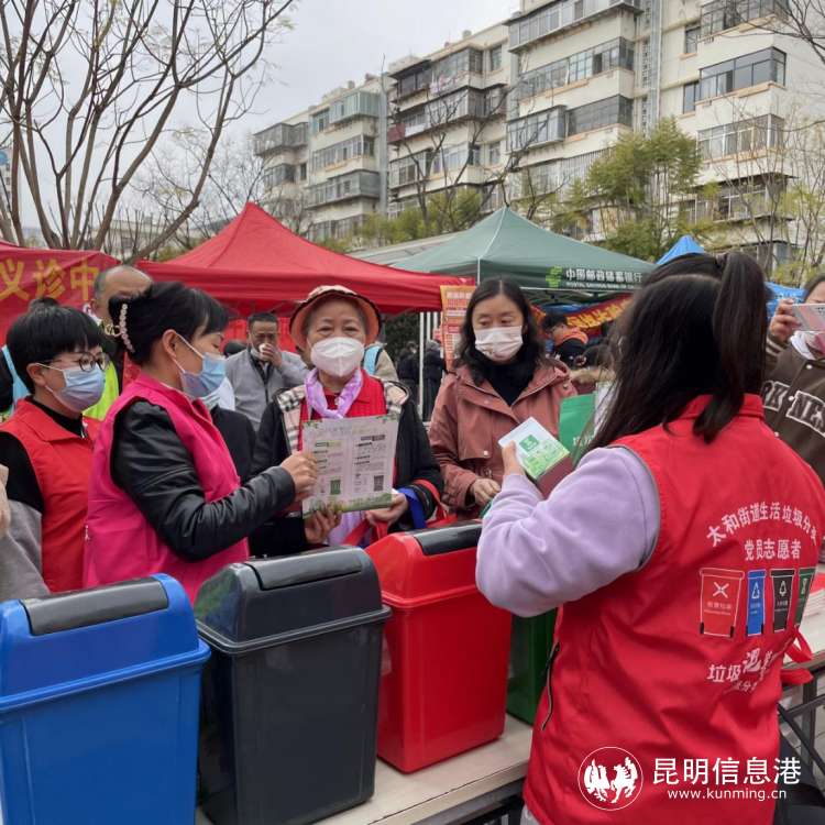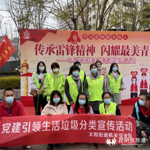 昆明信息港讯 记者陈旻玥 在3月5日学雷锋纪念日来临之际,为进一步弘扬志愿精神,太和街道通过党建引领,用“红色”引领“绿色”,发挥党员和基层党组织在推行生活垃圾分类工作中的作用,组织党员志愿者在塘子巷小游园开展“学雷锋树新风 垃圾分类在行动”生活垃圾分类宣传活动。