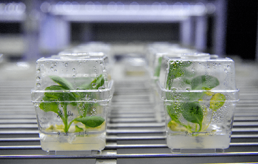 天津市农科院种质资源与生物技术研究所组培室拍摄的花椰菜基因编辑再生植株。(新华社记者孙凡越摄)