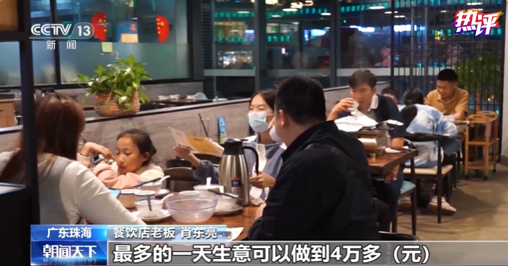 “订单量大概比平时增长了三倍多。最多的一天营业额可以做到4万多元,生意好了,我们信心更足了。”珠海一位餐饮店老板的信心,来自每天店里的忙碌场景。