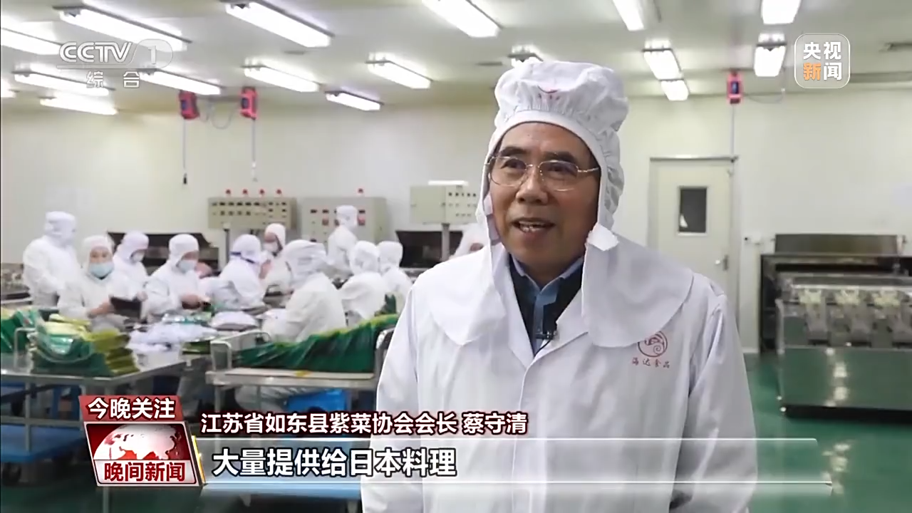 江苏省如东县紫菜协会会长 蔡守清:大量提供给日本料理,国内市场我们也有销售,大概在20%-30%左右。