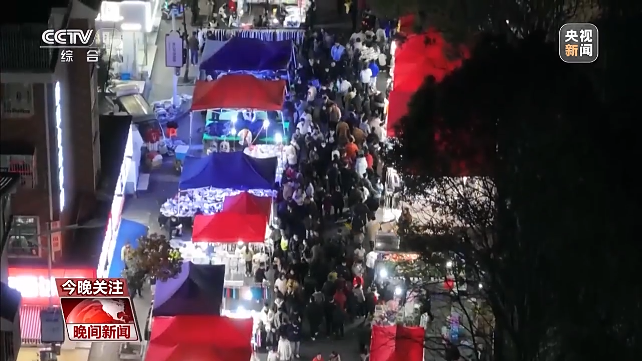 随着气温回升,外出的人群也为餐饮业带来了充足的客源。在浙江义乌,当夜幕降临,不少市民来到小摊品尝美食。