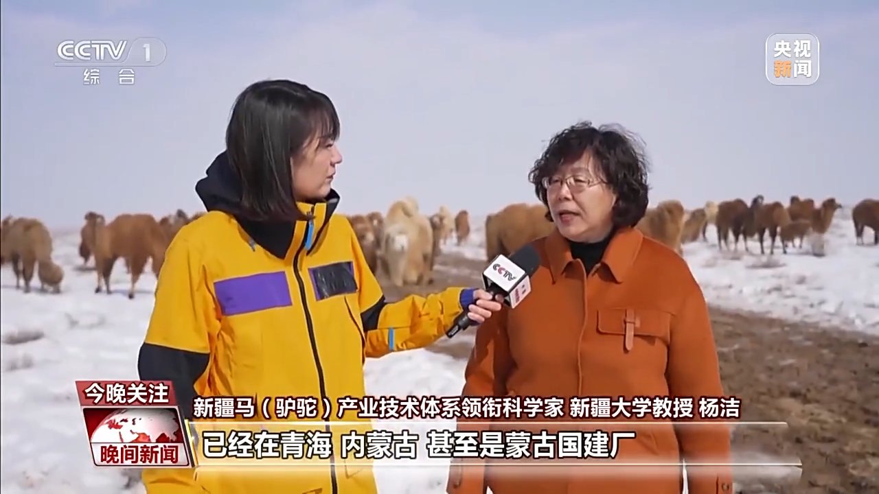 新疆马驴驼产业技术体系领衔科学家 新疆大学教授 杨洁:我们疆内有一些企业,已经在青海、内蒙古甚至是蒙古国建厂,哈萨克斯坦建厂,为我们新疆农牧民乡村振兴作为支柱产业,同时希望我们这个技术能够辐射中亚,辐射“一带一路”沿线国家。