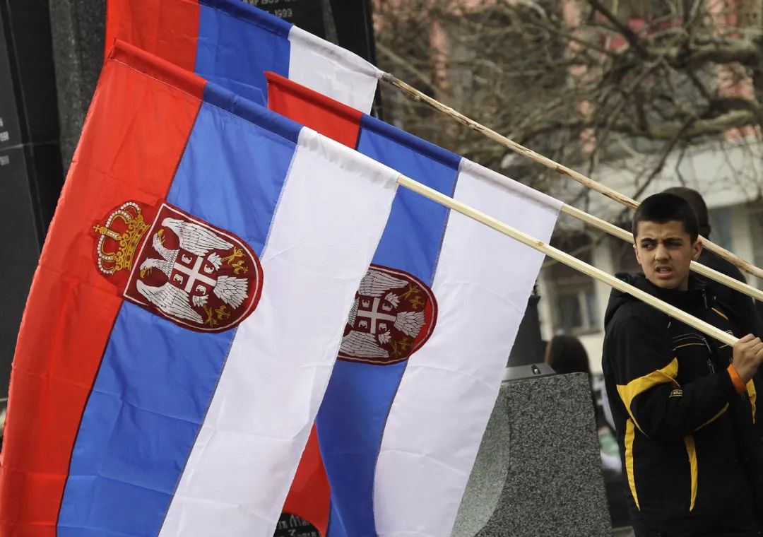 ▲2010年3月24日,在位于科索沃北部的米特罗维察,塞族居民在集会上手举塞尔维亚国旗,悼念11年前在北约对南联盟空袭中的遇难者。(新华社)