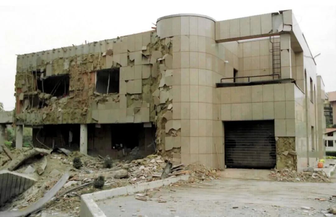 ▲图为坐落在中国驻南联盟大使馆院内的大使官邸被北约导弹毁坏后的惨状。(新华社)