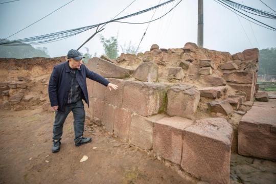 2月9日,在重庆合川钓鱼城遗址,重庆市文物考古研究院副院长袁东山在介绍新发掘出的位于类似阙台建筑基址上的宋井。新华社记者 黄伟 摄