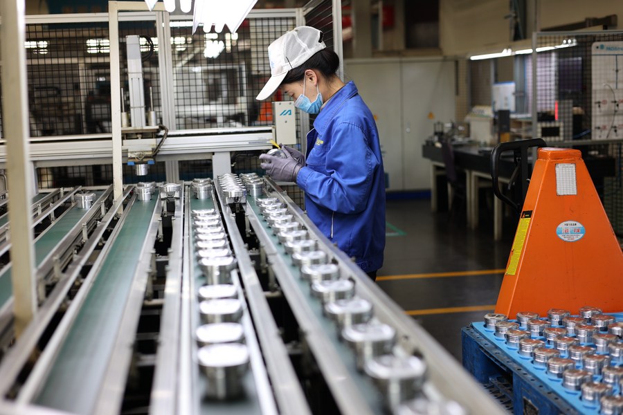 图为2月23日,工人在山东省滨州市一家汽车零部件加工企业生产活塞。新华社发(初宝瑞摄)