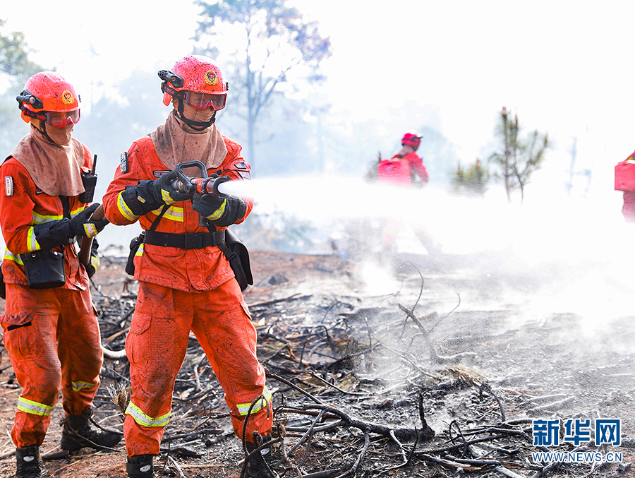 森林消防员在灭火(摄于3月17日)。