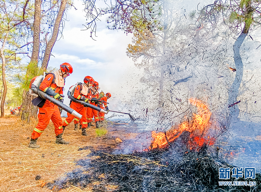森林消防员与地方扑火队伍联合处置火情(摄于3月17日)。
