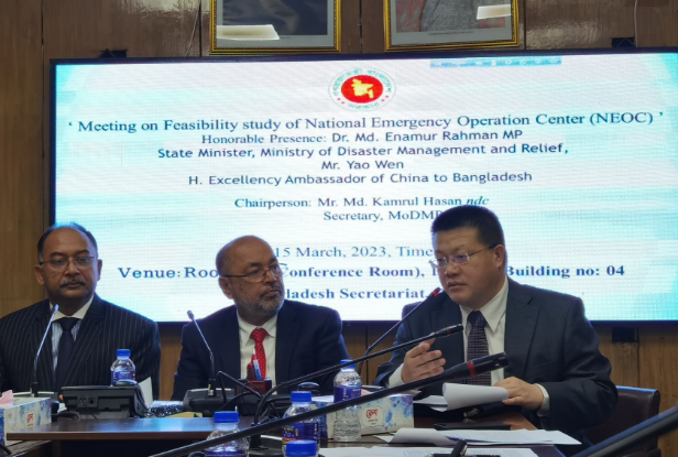 2023年3月15日,中国援孟加拉国应急管理中心项目可行性研究首次会议在驻孟使馆召开。我驻孟使馆大使姚文、孟灾害管理与救助部国务部长拉赫曼、北京市建筑设计研究院考察专家组成员等出席。