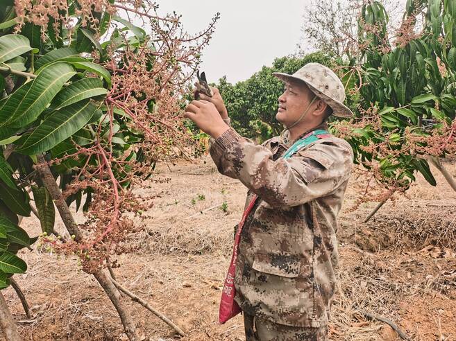每年芒果采收后果农都要进行管护,包括修剪、除草、病虫害防治、浇水、施肥,芒果开花时还要适当对花朵进行修剪,提高挂果率。眼下正是芒果春季管护的关键时节,勐底农场白塔社区果农字震宇边修剪芒果花边告诉记者,花开以前这段时间也是芒果、荔枝嫁接的最佳时期,他家的20多亩果园,大部分已完成了改良,现在最关键就是要做好病虫害防治,去年芒果产量10吨,今年有信心达到20吨左右。