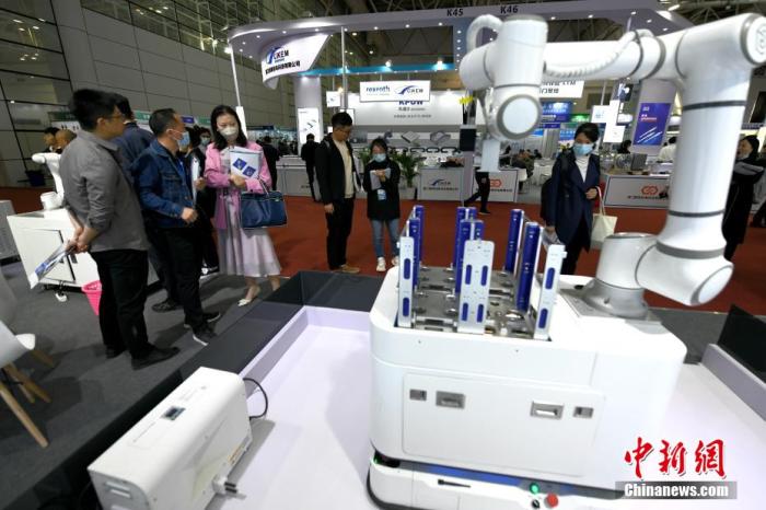 资料图:3月9日,2023中国(福州)工业博览会在福州海峡国际会展中心举办,各种机器人自动化设备吸人眼球。