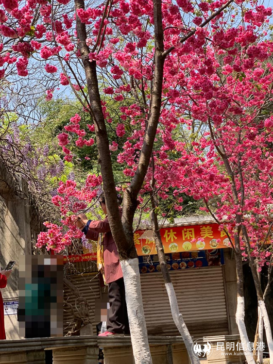 3月18日在圆通山动物园游客拉扯花枝拍照