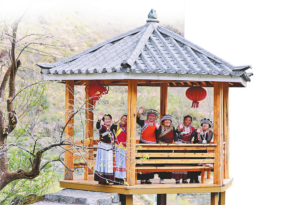 林间叠瀑、稻田连畦,景观与种植结合,满是田园好风光。春有百花、秋有蔬果,村民个个喜笑颜开。“锵锵锵锵锵”锣声震天响,“上刀山,下火海”把所有嘉宾吸引至刀山场。这项活动是傈僳族人民的传统绝活,展现山地民族翻山越岭的生活经历及攀藤负葛的艰苦卓绝精神。“刀山”周围,村民们身着民族服饰,敲锣转圈,几位来自非洲的嘉宾按捺不住,率先加入,戴上民族特色的帽子,一起唱跳。斯里兰卡大使帕利塔·科霍纳笑呵呵地邀约身边人:“来吧来吧,一起跳舞! ”