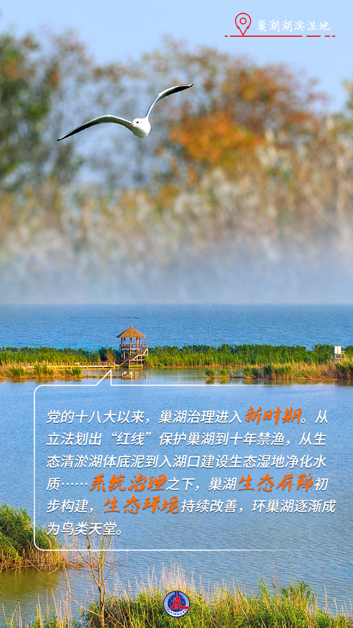 痛定思痛,痛下决心。从立法划出“红线”保护巢湖到十年禁渔,从生态清淤湖体底泥到入湖口建设生态湿地净化水质……系统治理之下,巢湖生态屏障初步构建,生态环境持续改善,环巢湖逐渐成为鸟类天堂。