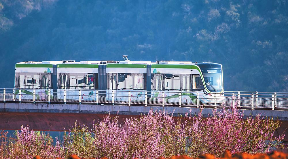 2021年,国内首个县级城市有轨电车项目在丘北县落地。乘坐文山城市轨道交通现代有轨电车4号线,20分钟就可从普者黑高铁站直达普者黑景区游客服务中心。朱志刚/图