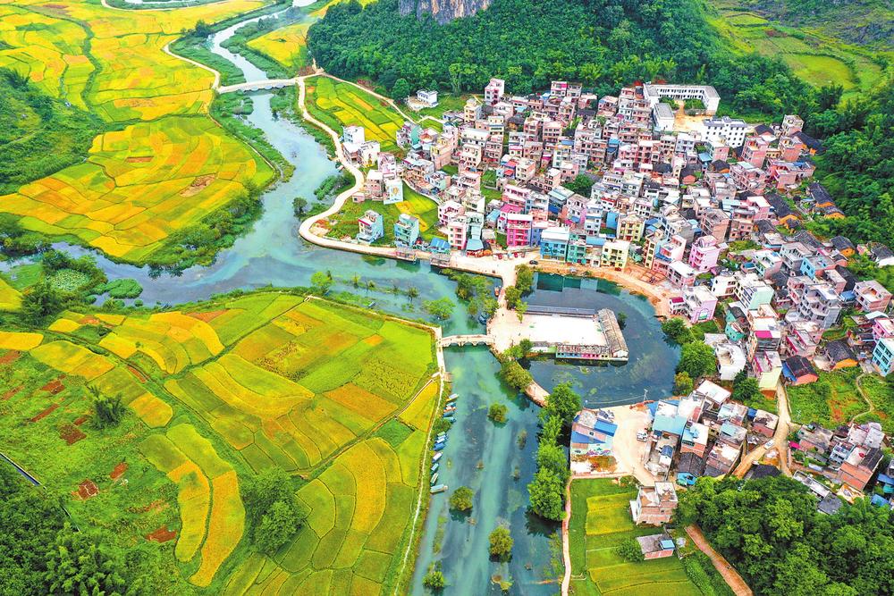 在青山绿水间筑梦绿美,文山路径愈加清晰:以党建引领,统筹推进城乡人居环境、“七城创建”、绿美建设、乡村振兴各项重点工作,努力打造出建设绿美云南的“文山模式”。图为广南县八宝镇河野村。梁艳/图