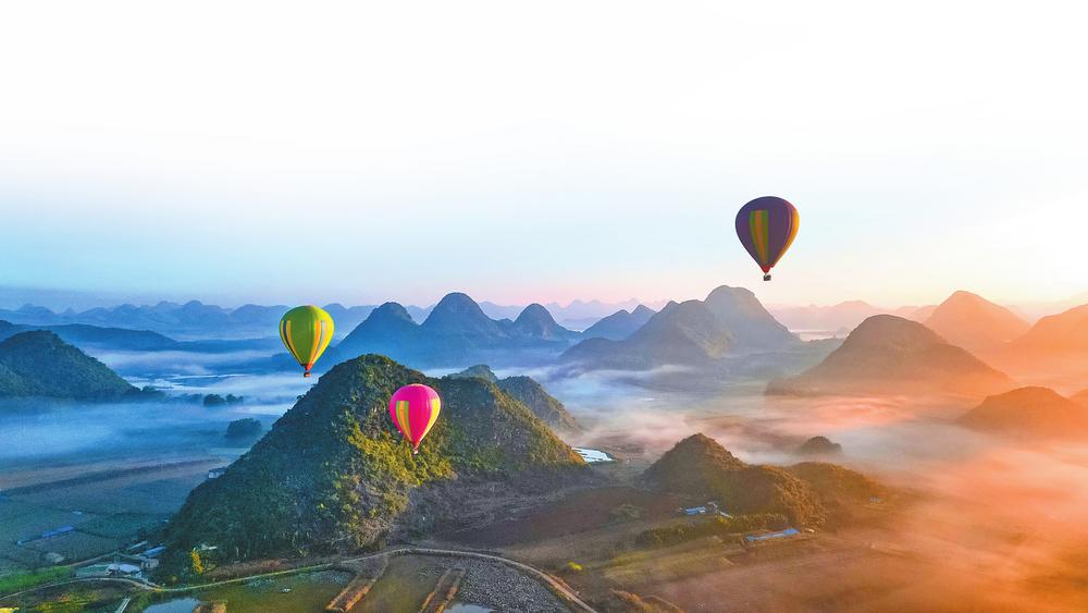文山州有由汉、壮、苗、彝、瑶等11个世居民族共同创造的铜鼓文化、稻作文化、坡芽文化,还有苗族“花山节”、壮族“三月三”、彝族“花脸节”、汤谷“女子太阳节”等丰富多彩的文化积淀。近年来,文山不断创新产品,丰富游客的旅游体验。图为普者黑景区热气球体验项目。吴哲芳/图