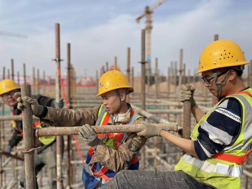 喀什大学东城校区项目现场,中建三局施工人员正在进行主体结构施工。新华社发(冯跃龙/摄)
