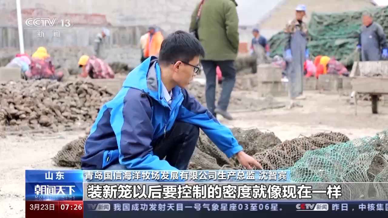 青岛国信海洋牧场发展有限公司生产总监 沈智宾:装新笼以后要控制的密度就像现在一样,每层里面现在只有七到八个牡蛎,一个是空间比较宽裕,第二它可以滤食的海水的量也会大幅度增加。