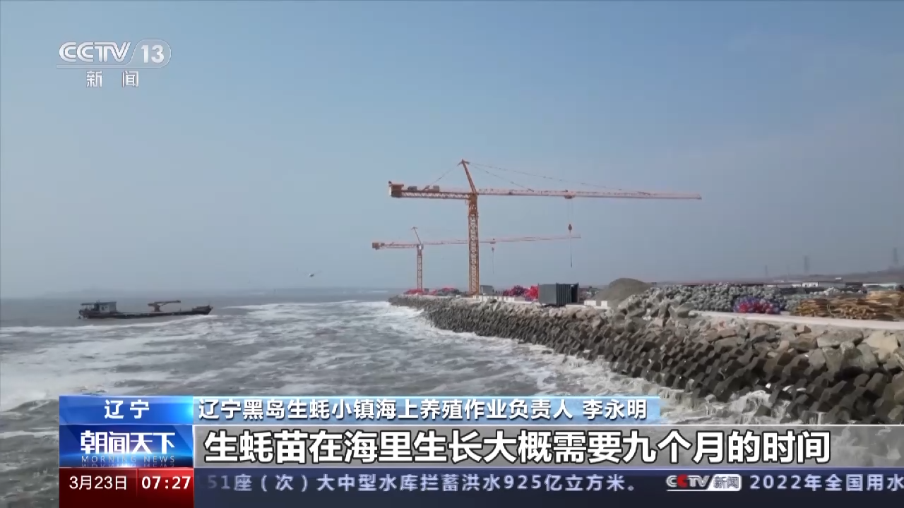 辽宁黑岛生蚝小镇海上养殖作业负责人 李永明:投苗不仅仅依靠技术,还要依赖天气与潮汐。生蚝苗在海里生长大概需要九个月的时间,就能进行分拣装笼了。