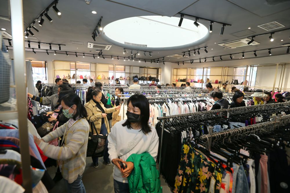 位于重庆两江新区的砂之船奥特莱斯商场内,消费者正在选购优惠商品。(何为 摄)