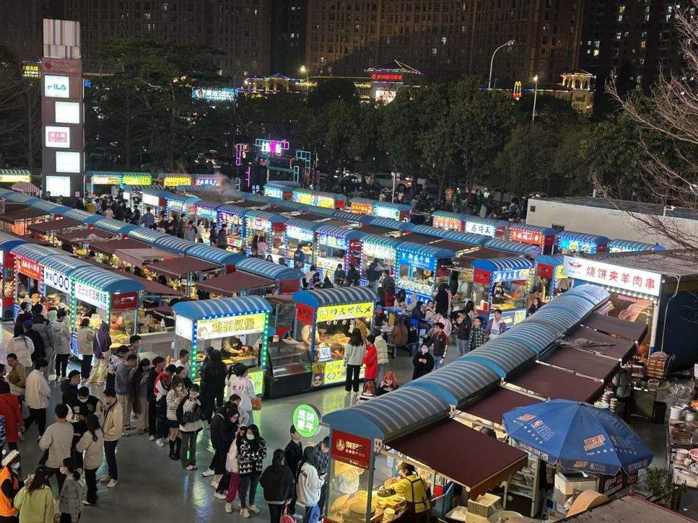 夜幕降临,位于福建省福州市大学城的东百城永嘉天地夜市灯光绚烂,数十家摊位售卖特色美食、手作文创等,市集上人头攒动,部分摊位前排起长队。