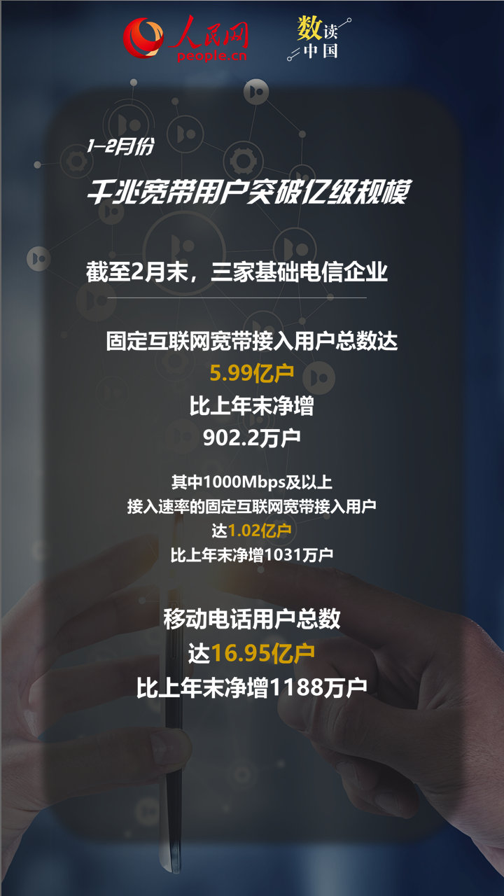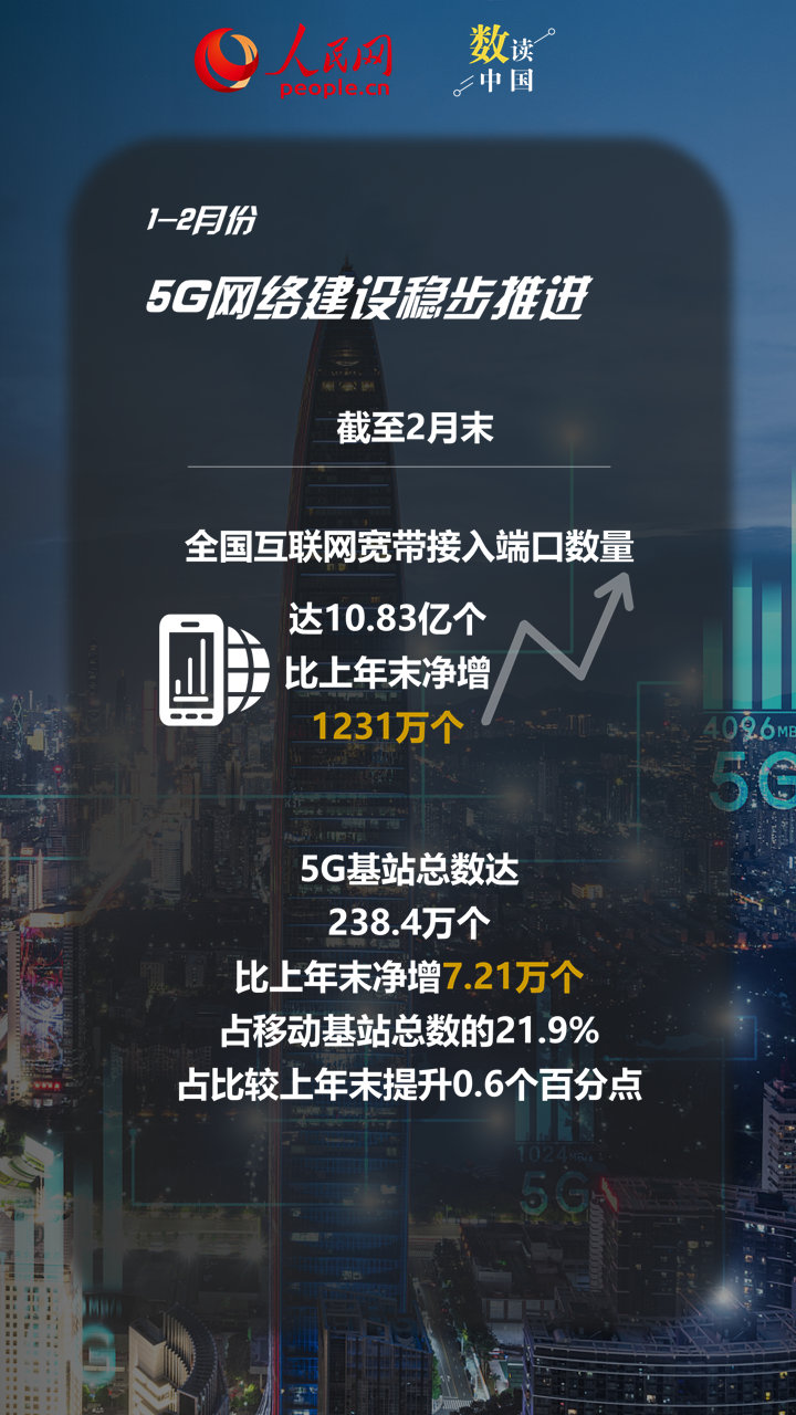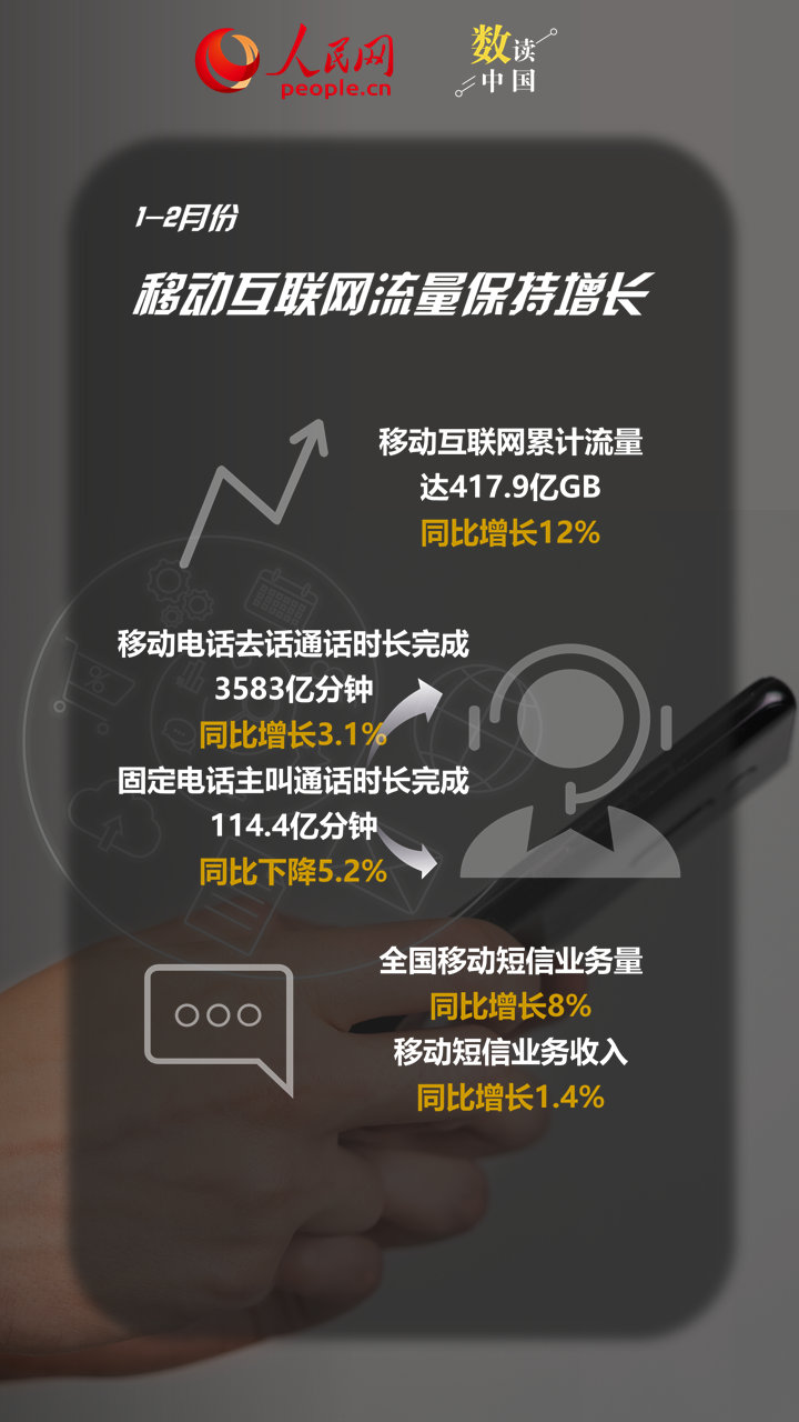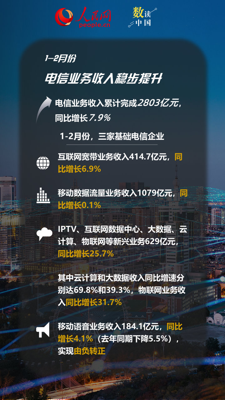 1-2月份,信息通信行业整体运行平稳。电信业务收入和业务总量稳步增长,云计算等新兴业务拉动作用持续增强;5G、千兆光网、物联网等新型基础设施建设稳步推进,网络连接终端用户规模不断扩大。
