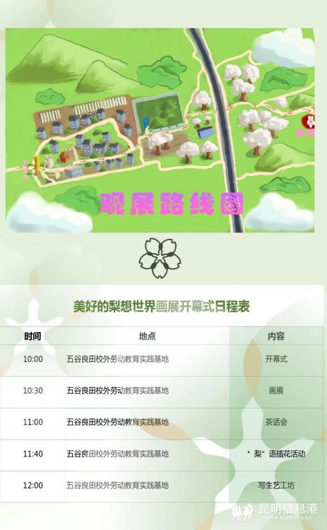 昆明信息港讯 记者周智宇 3月25日,“美好的梨想世界”乡村主题画展在昆明市呈贡区万溪冲社区校外劳动教育实践基地开幕,将画展的举办地点从美术馆、艺术馆搬到了美丽的田园乡村,精心打造了沉浸式观展,为万溪梨花节增加了一抹艺术之美。