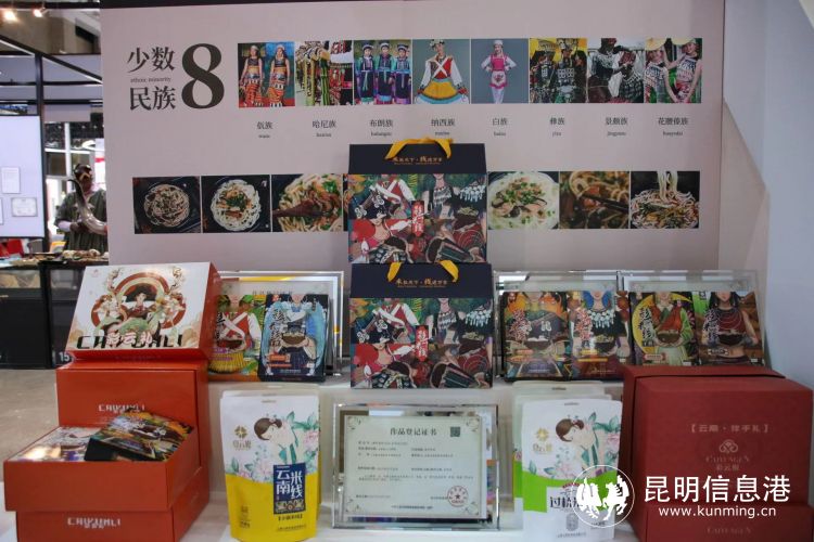 在云南,大街小巷热气腾腾的米线,嗦一口就让人魂牵梦萦,这一份米线滋味不仅是每个在外游子心中的家乡味道,更是一份适合的伴手礼。在展区内,以少数民族为元素进行包装设计的彩云米线,不仅展示了云南各民族的服饰特点,更是根据各地的饮食习惯推出不同口味的米线,傣族的傣味香拌米线、彝族的滚锅牛肉米线、纳西族的鲜肉小锅米线......身着民族服装的少女手捧大碗为大家送上了来自云南的味道,秀色可餐。