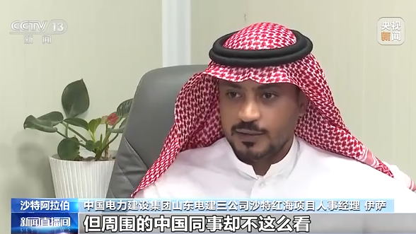 中国电力建设集团山东电建三公司沙特红海项目人事经理 伊萨:在红海新城这样巨大的项目中,有中国公司的参与和支持,有我们沙特本国人为祖国发展的奉献,有项目上来自二十多个国家的工人辛勤劳动,最终才有了今天这样的成果。我们现在的努力是为了未来的希望,我想这就是命运共同体的真正内涵。