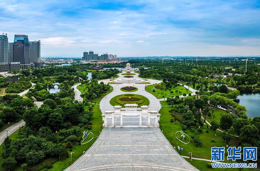 图为鸟瞰抚州市名人雕塑园。新华网发 姚文卿 摄