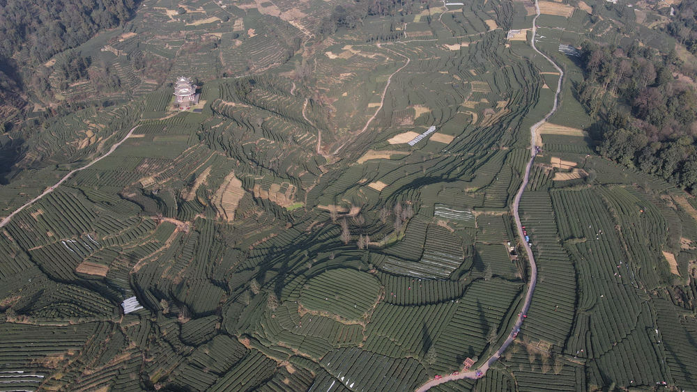 这是位于雅安市名山区红星镇的万亩观光生态茶园(无人机照片)。新华社记者 胥冰洁 摄