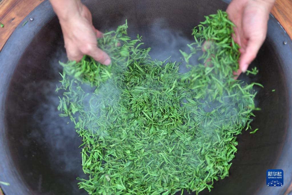 3月20日,在湖南衡阳常宁市塔山瑶族乡,茶农在炒茶。新华社记者 赵众志 摄