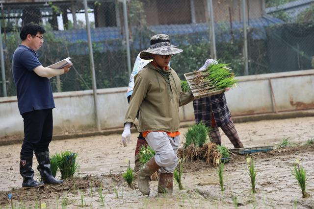科技小院租了曼拉村50亩地做试验田,“云南大学试验站”的大红牌子立在田间异常醒目。“‘赤脚大仙’来了!”2月中旬,北国还在冬末,西双版纳已到了插秧季节,科技小院师生们正抢抓时令,忙着插秧。