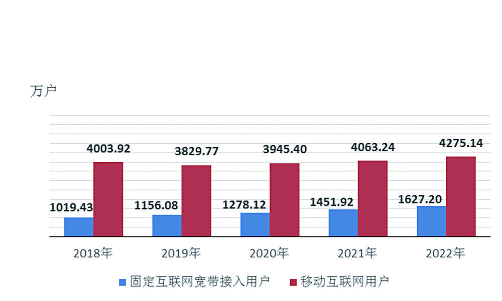 图10 2018-2022年年末云南固定互联网宽带接入用户数和移动互联网用户数