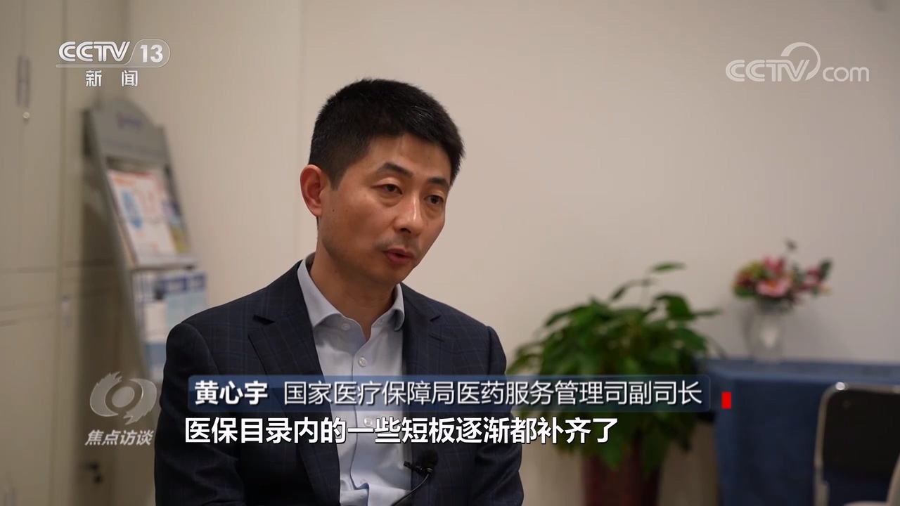 国家医疗保障局医药服务管理司副司长黄心宇:“总书记指出,我们建立全民医保制度的根本目的就是要解除全体人民疾病治疗的后顾之忧。原来缺一些肿瘤的靶向药、一些罕见病的用药、一些慢性病的用药,医保目录内的短板逐渐都补齐了,整体全类别各种病人,他们的用药选择都得到了丰富。”