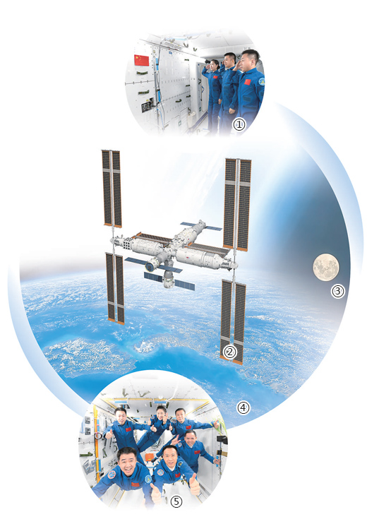 图⑤:神舟十四号乘组和神舟十五号乘组胜利“会师”。