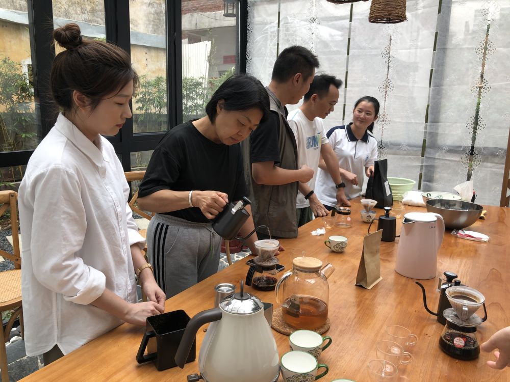 广东肇庆岩前村的一家民宿在组织手冲咖啡活动。(区丽萍 摄)