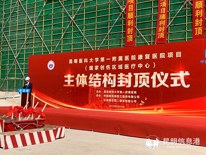 昆明信息港讯 记者孙红亮 3月29日上午,昆明医科大学第一附属医院康复医院项目(国家创伤区域医疗中心)主体结构封顶仪式在呈贡举行。