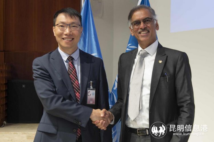 菜鸟CEO万霖(左)与世界粮食计划署副执行干事曼诺吉·朱内贾(Manoj Juneja)(右)在罗马签署全球物流合作协议。