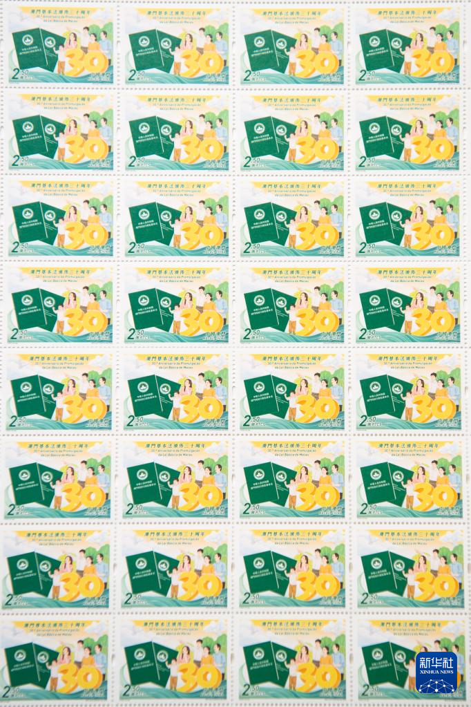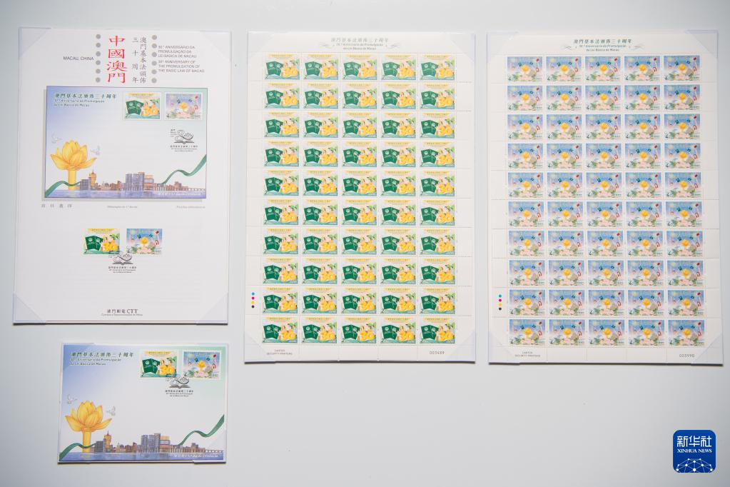 这是“澳门基本法颁布三十周年”邮品(3月30日摄)。新华社记者张金加/摄
