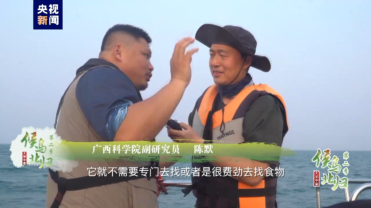 广西科学院副研究员 陈默:因为这些(鲸鱼)在海面上捕食,它们一般喜欢把鱼赶到表面上来。布氏鲸一张嘴捕食,还有一些其他没有吃进嘴巴里的鱼,有的可能晕了,有的可能在水面乱跳,这种时候海鸥来吃特别容易,它就不需要专门去找或者是很费劲去找食物。