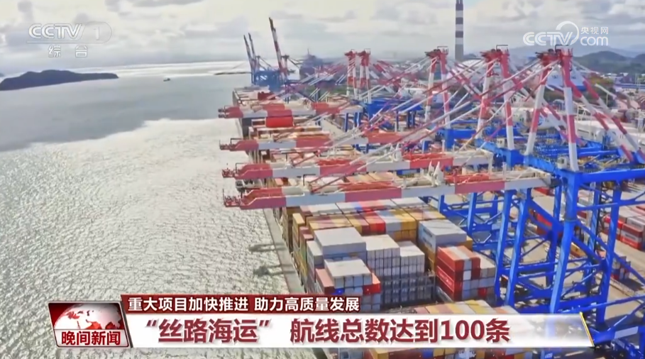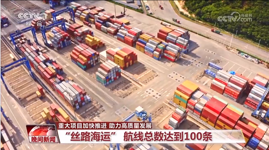 “丝路海运”是我国首个以航运为主题的“一带一路”国际综合物流服务平台,自2018年12月24日首条航线开行以来,累计开行超10000艘次,完成吞吐量超1200万标箱。今天, 以“丝路海运” 命名的航线总数达到100条,覆盖7座港口,通达43个国家和地区。