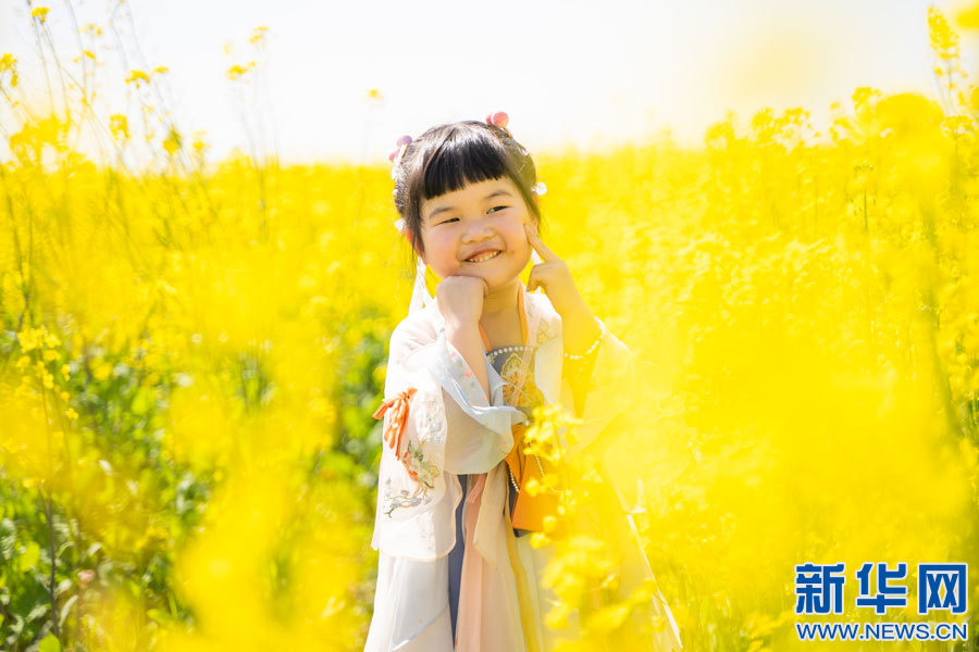 游客在余干县三塘乡神埠村油菜花田游玩。新华网发韩海建/摄