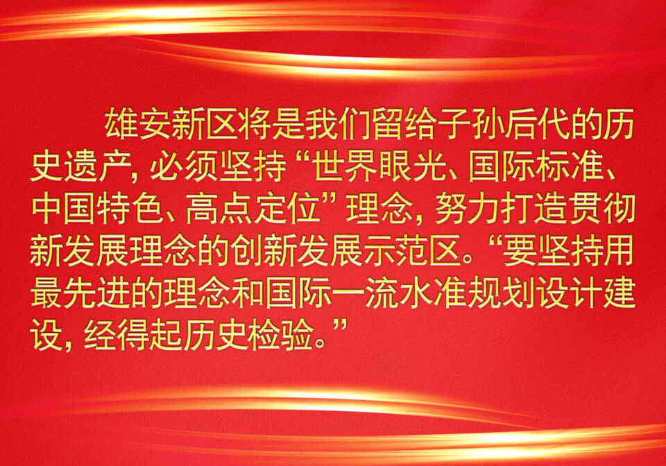 习近平总书记高瞻远瞩谋划推动雄安新区规划建设,他强调,要贯彻高质量发展要求,创造“雄安质量”,在推动高质量发展方面成为全国的一个样板。