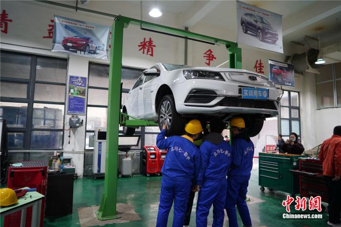 来到实训中心,学生们正在老师指导下进行汽车维护保养、机械故障诊断等操作。该校实训处主任方全双介绍,“我们的学生大多来自山村,同学们都很能吃苦,通过努力训练参加市赛、省赛、国赛,继续深造学习。”机电教学部教师王禄春说,根据最新汽车发展方向,学校还与时俱进开设了新能源汽车维护与保养课程。
