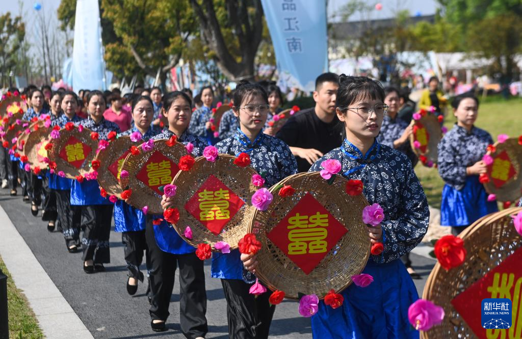 4月2日,人们参加蚕花节民俗巡游活动。新华社 记者徐昱 摄