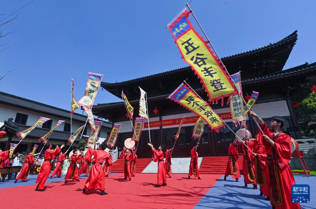 4月2日,含山山南大殿前的广场上正在举行蚕花节的“祭蚕神”民俗表演。新华社 记者徐昱 摄