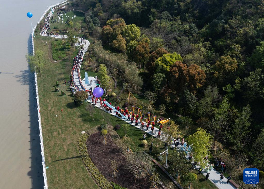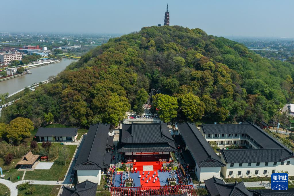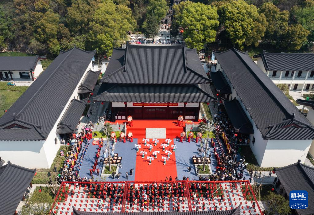 4月2日拍摄的含山蚕花节“祭蚕神”民俗表演(无人机照片)。新华社 记者徐昱 摄
