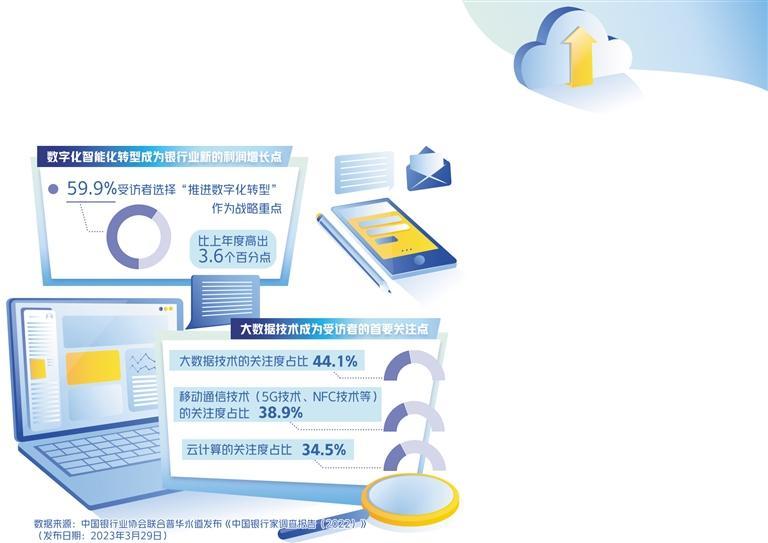 越来越多的商业银行将“科技立行”“科技兴行”“科技强行”作为自身的发展战略,全面加快数字化转型。邮储银行3月30日发布的2022年年报显示,邮储银行2022年信息科技投入达106.52亿元,同比增长6.20%,占营业收入的3.18%;与此同时,该行投产上线了330项信息化工程,进一步提升了金融服务的智能化水平。